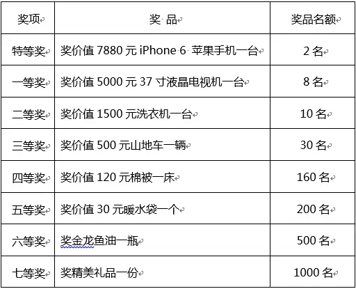 1、奖项设放:凡参与抽奖顾客,拿抽奖劵到商场指定地点完成抽奖即可。